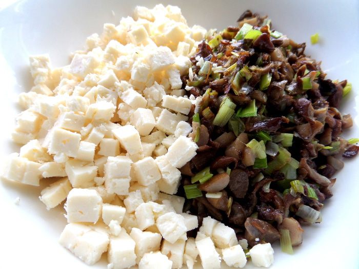 Брынзу нарезать на кубики.