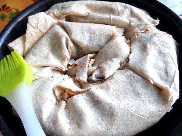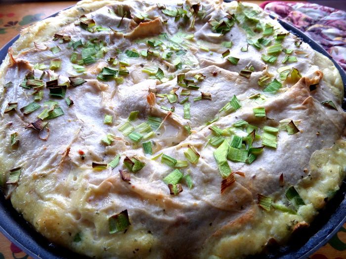 Заливаем омлетом равномерно весь лаваш.