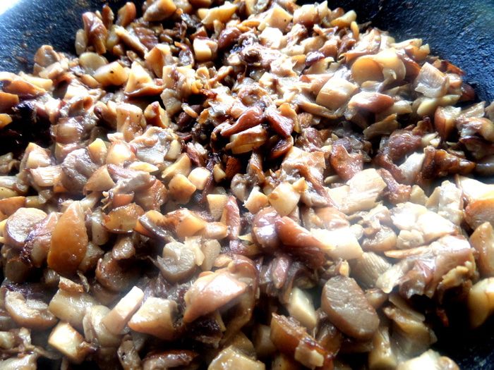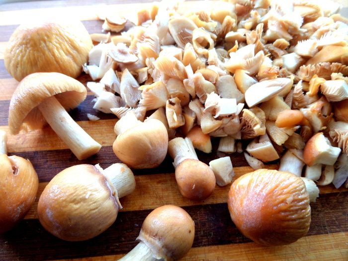 Измельчаем грибы.