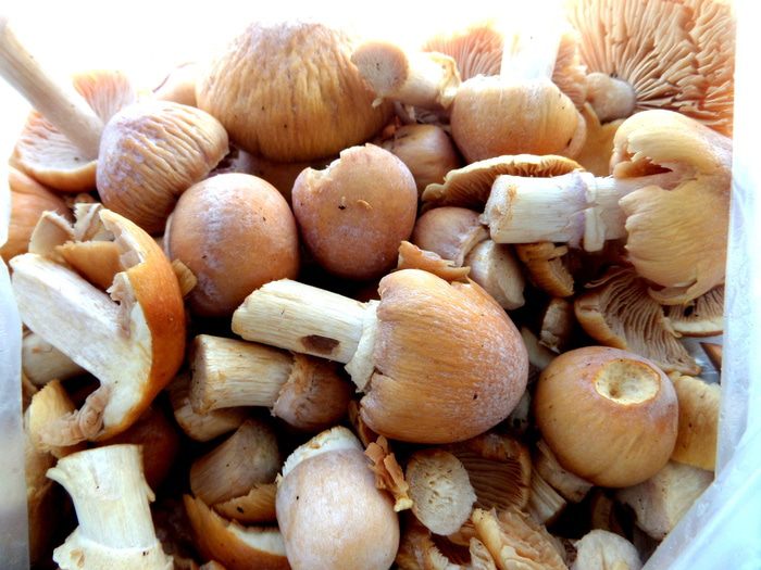 Лесные шампиньоны очищаем,промываем,просушиваем.