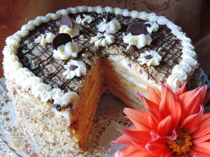 Выпекаем коржи в разогретой до 190-200 градусов духовке примерно 10 минут до красивого золотистого цвета. Коржики довольно сильно поднимаются и вздуваются, поэтому рекомендую сырой корж наколоть вилкой перед выпечкой. С бумаги снимать горячими!!! Возьмите качественную, желательно силиконизированую бумагу, иначе корж может прилипнуть. Если это все же случилось, смочите бумагу водой и она легко отстанет от теста.