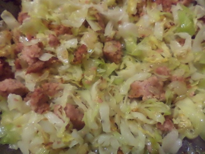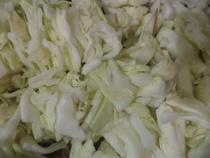 Добавить капусту, протушить всё вместе под крышкой на небольшом огне.