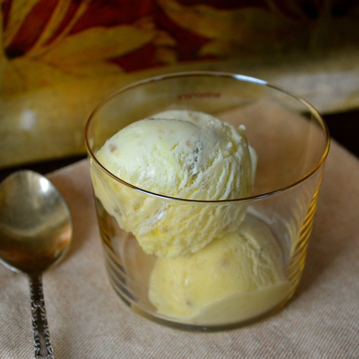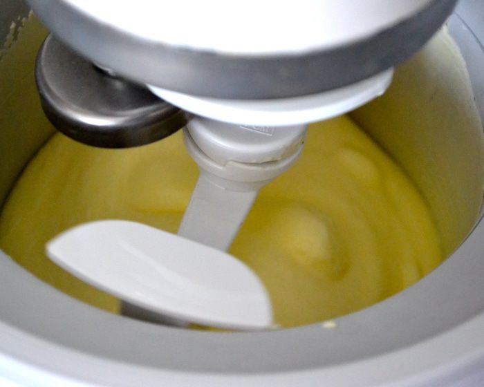 Охладить полученный крем... А затем выложить в чашу мороженницы и готовить, согласно указаниям производителя. Если у Вас нет машинки для мороженого переложить смесь в контейнер, подходящий для заморозки.