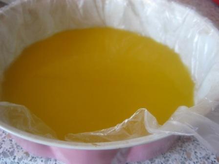 Желатин подогреть ( 15 секунд в мв), добавить в горячей смеси,мешать до растворения желатина.