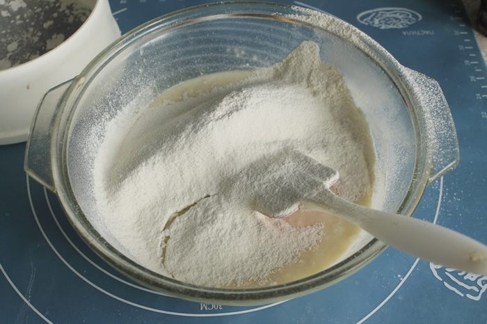 Просейте муку, хорошо вымесите. Оставить на 25 минут.