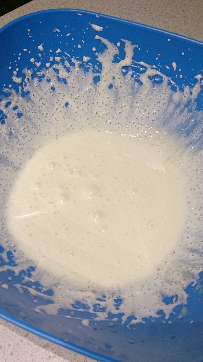 Продолжаем взбивать, пока белки не станут плотными.