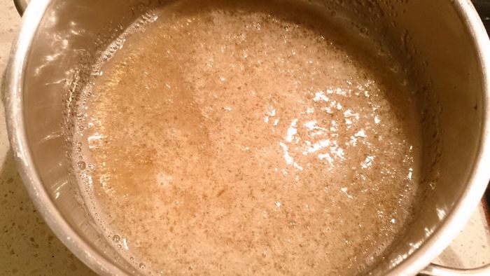 Желатин залейте оставшимися 100 мл воды и дайте набухнуть. Нагрейте на огне до растворения гранул. Но не кипятите! Дайте немного ему остыть.