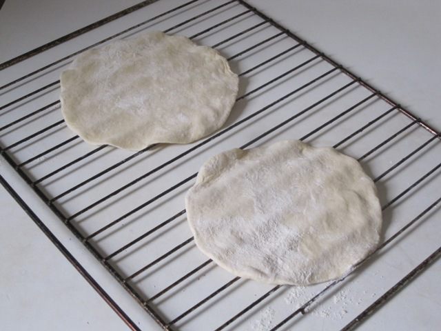 Раскатать каждый шарик в круглую, не очень тонкую лепешку. Выпекать на решетке при 250 С 4-6 минут, пока лепешка не вздуется.