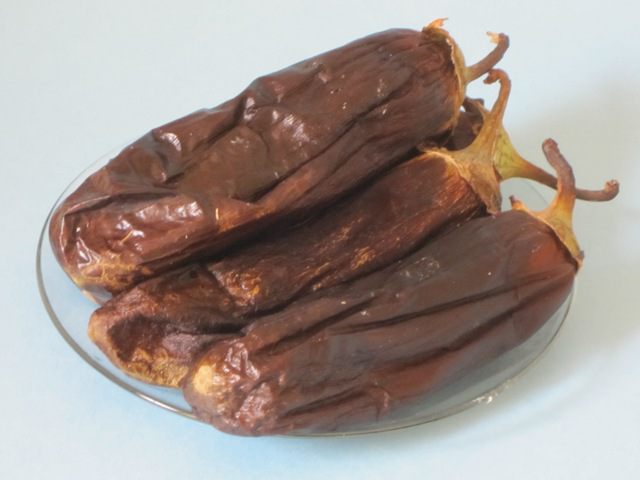 Очистить баклажаны от кожицы.