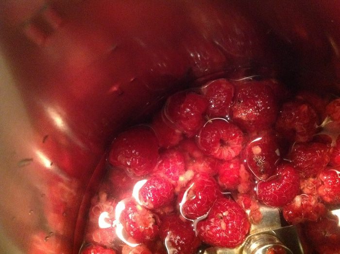 Несколько ягод малины оставьте для украшения, остальную залейте водой, доведите до кипения.