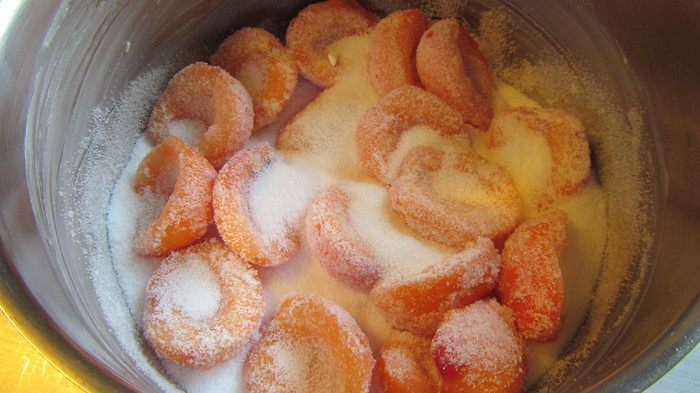 1. Для данного джема (да и для многих других) фрукты лучше брать недозрелые, так как они содержат больше пектина, а значит джем быстрее и лучше загустеет). Проверено на себе - с переспевшими абрикосами сложнее и по вкусу джем уступает.
