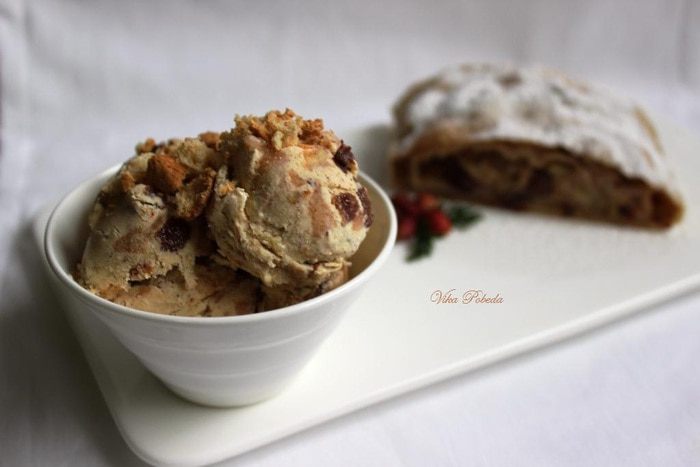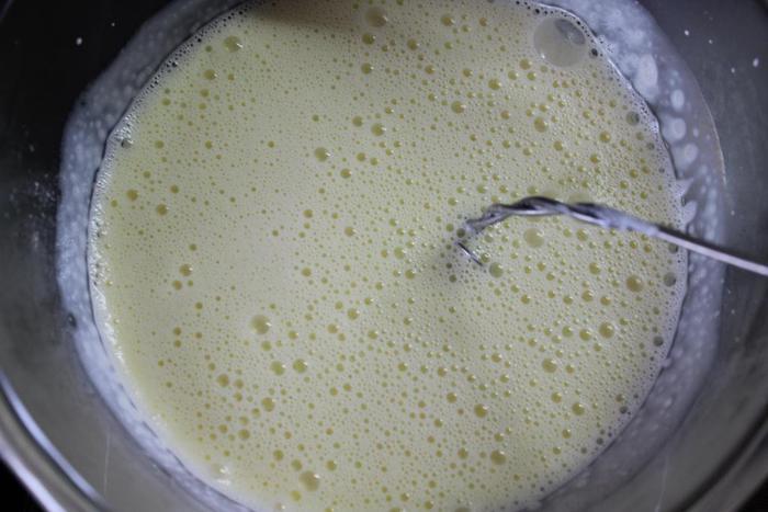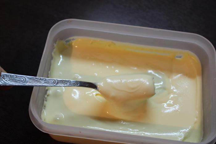 Когда крем станет холодным хорошенько взобьем его, перельем в контейнер, поставим в морозильную камеру и дадим ему постоять там не менее часа, можно больше.