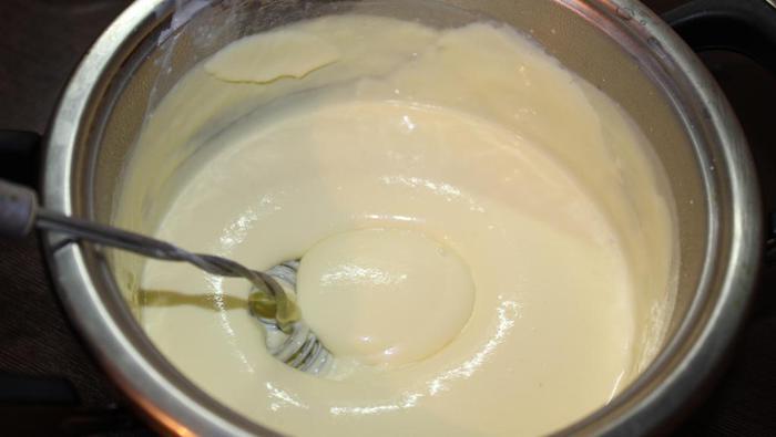 А затем после остывания до комнатной температуры в холодильник, закрыв пищевой пленкой, чтобы не образовывалась корочка.