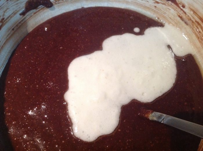 и добавьте в шоколадную смесь. Аккуратно вмешайте от краев к центру.