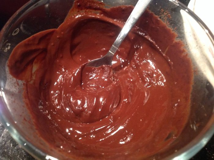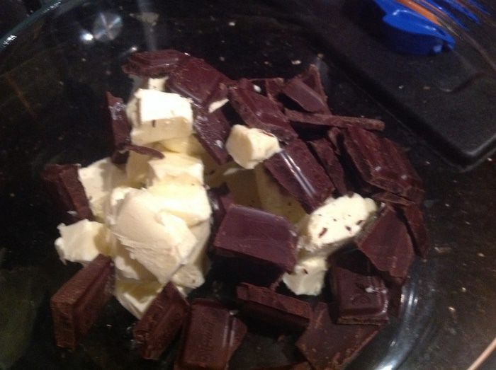 Шоколад и сливочное масло растопите на водяной бане или в микроволновке. Перемешайте и немного остудите.