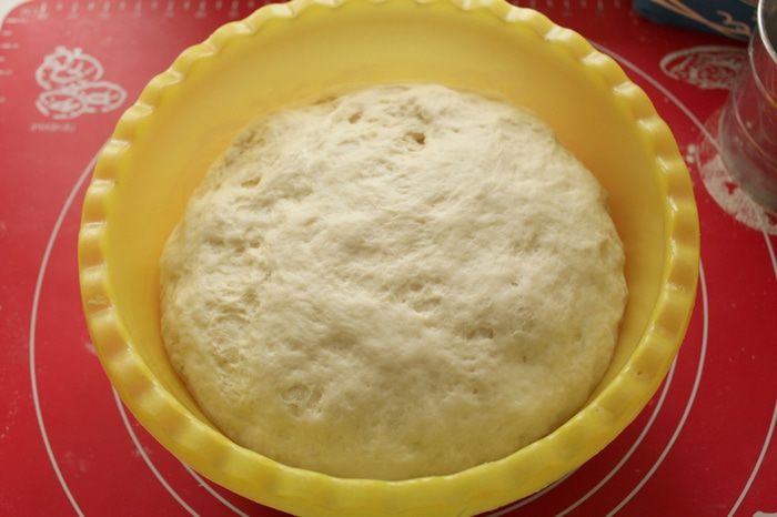Тесто помещаем в чашку,накрываем пленкой и оставляем на 50-60 минут для подъема.