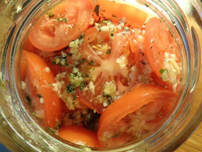 Сейчас самое время приготовить эти изумительные помидоры. Время их маринования составляет всего 15 минут! Пока вы приготовите гарнир, они уже дойдут до нужной кондиции! А аромат маринада - просто божественен! Мед, чеснок, мята... уверяю, вы получите еще и сеанс ароматерапии при приготовлении этих экстра-быстрых помидор!