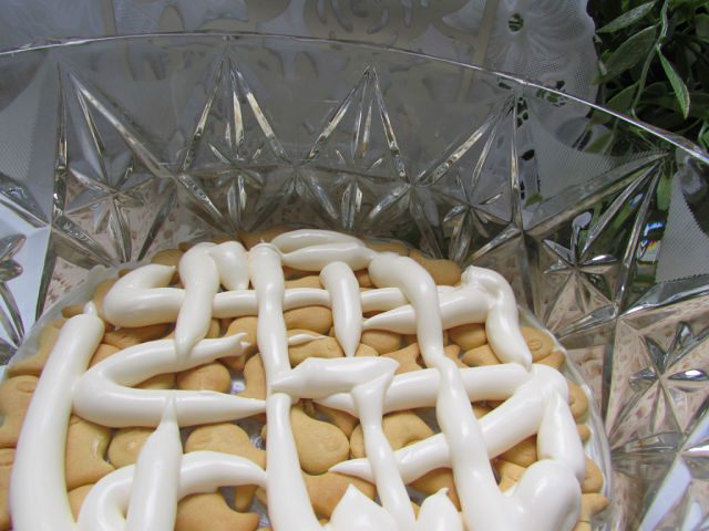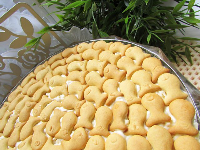 Сборка салата. Дно салатницы слегка смазать майонезом. Выложить в один слой крекер (рыбки).