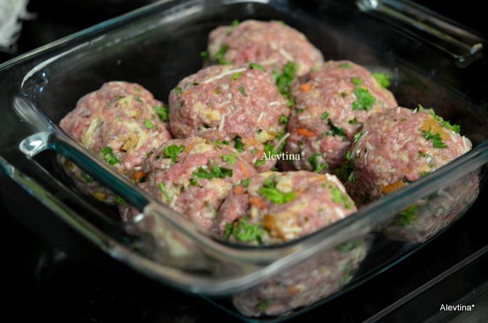 Взбить слегка яйца в большой емкости, добавить фарш говяжий не жирный, порубленную петрушку, пармезан,мелко порезанный чеснок, соль 1 ч.л и красный перец хлопьями. Затем добавить крошку в молоке и все перемешать.