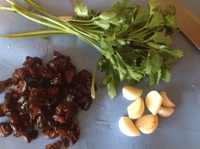 Я брала грамм 150 клюквы из морозилки, разморозила ее, взбила блендером, добавила сахар по вкусу, цедру апельсина и чуточку апельсинового сока.