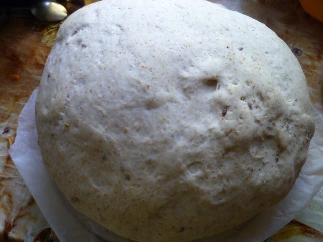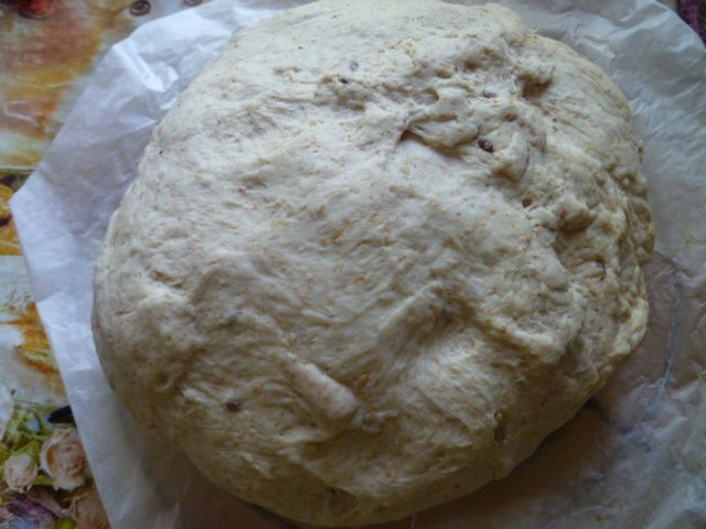 Готовое тесто переложить на противень с пергаментом, накрыть полотенцем и оставить на расстойку на 20-30 минут.