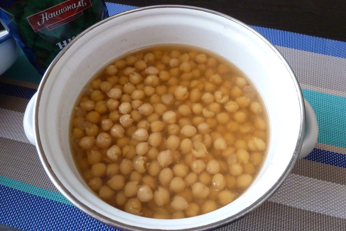 Нут заранее замочим в воде, хотя бы часа на 4, а лучше на ночь. Сварим до готовности, на это уйдет часа 2-3.