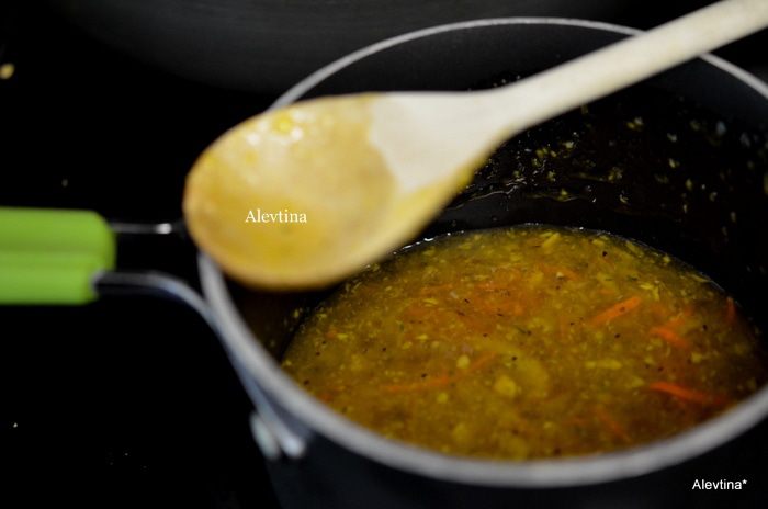 Смешать джем апельсиновый мармеладный, мед, уксус, Табаско, щепотку соли. Поставить на огонь и тушить примерно 10-15 мин.