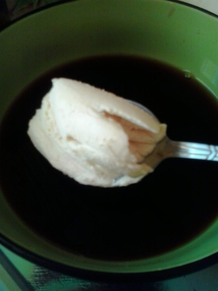 Завариваем кофе любимым способом. Я это делаю в турке. Крепость также на вкус. Мой вариант для десерта 1 ч.л на 100 мл воды.