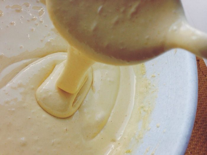 По одному добавить два стакана просеянной муки. Тесто должно получиться воздушным и легким