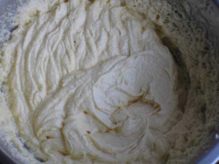 Не выключая миксер,ввести по одному яйца.