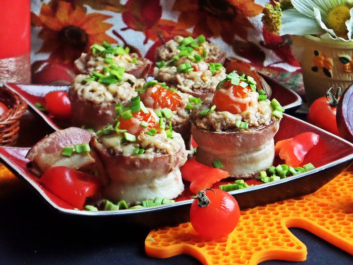 Вставить по помидорке в каждую. Запекать около 20 минут.