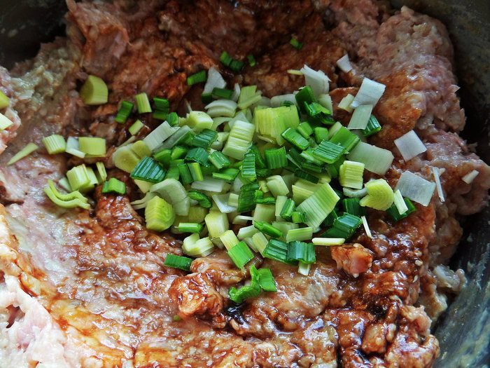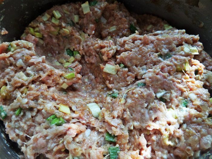 Высыпать порей к фаршу.