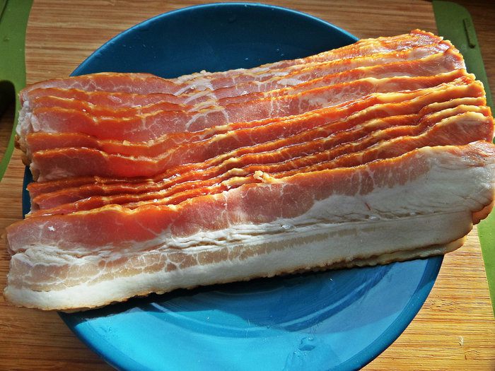 Теперь понадобится 9 пластинок бекона.