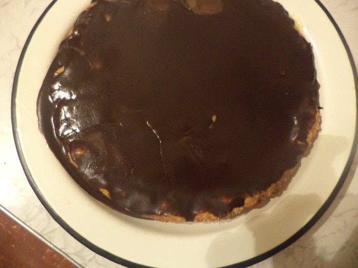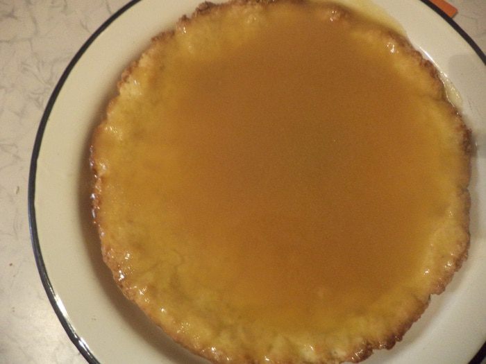 Полить карамелью испечённый и слегка остывший корж.