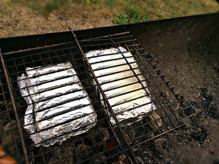 Заверните рыбу плотно в фольгу и выложите на решётку гриля.