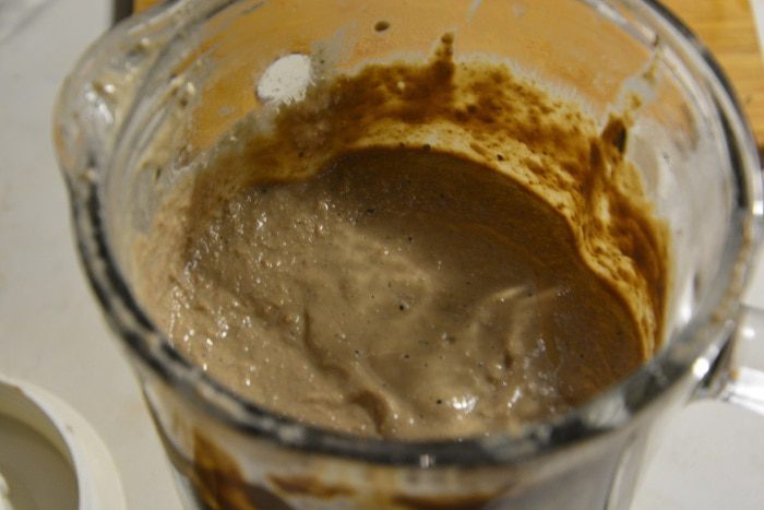 Измельчить все в блендере до однородной массы. Добавить коньяк и перемешать.