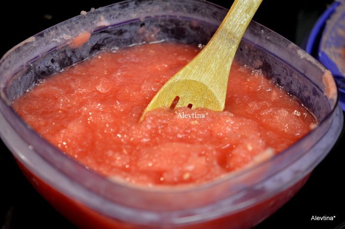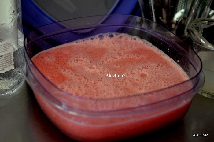 Содержимое перелить в контейнер с крышкой. Добавить сок лайма, водки, если нравится крепкая гранита ,то добавляем 200 мл. Перемешиваем , закрываем крышкой и ставим в морозильник на 3-4 часа.