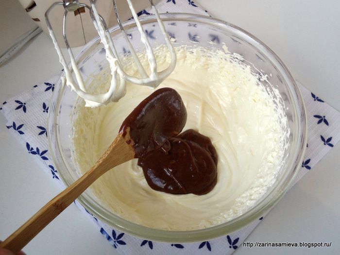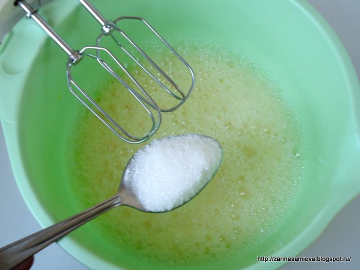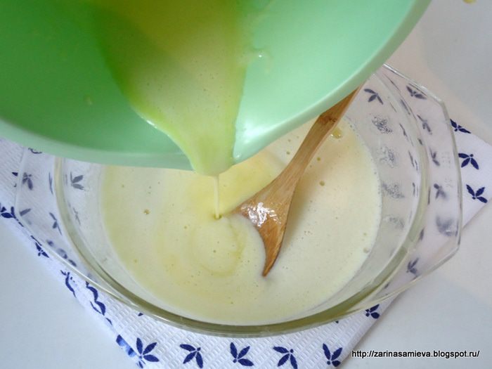 Тем временем желтки взбить с оставшимся сахаром. Молочный сироп снять с огня и влить в него взбитые желтки, при этом интенсивно помешивая ложкой, что бы желтки преждевременно не заварились хлопьями. Поставить кастрюльку на огонь и, не переставая помешивать заварить крем.