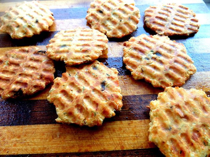 Накрываем,жарим минутку,переворачиваем,жарим снова минутку и снимаем чипсинки с вафельницы.