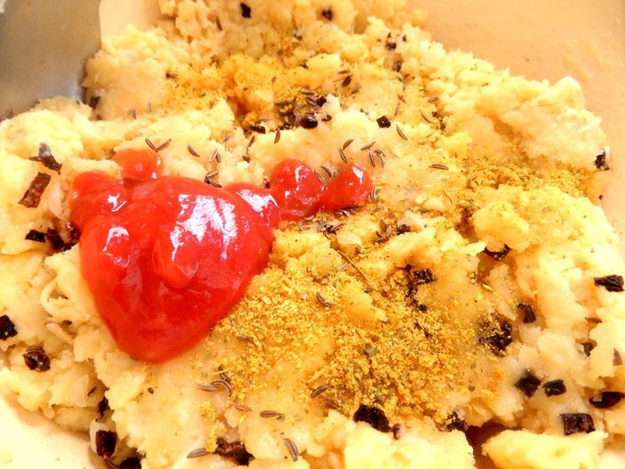 Для цвета добавила ложку кетчупа (но не обязательно),тмин и как обычно овощные приправы с солью. Можно добавить чили в порошке.