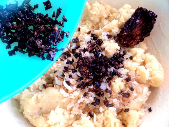 Но решила добавить интересные добавочки: вяленые помидоры,тмин,жареный лук,сухие овощные приправы...и вот что у меня получилось!