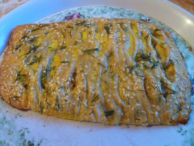А здесь слоечка посыпанная сверху укропом. Очень красиво.