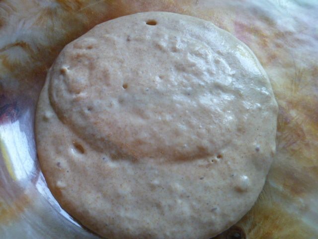 Закваска нужна на пике активности. Выкладываем закваску в миску. Нам нужно всего 4 ст.л. ржаной закваски.