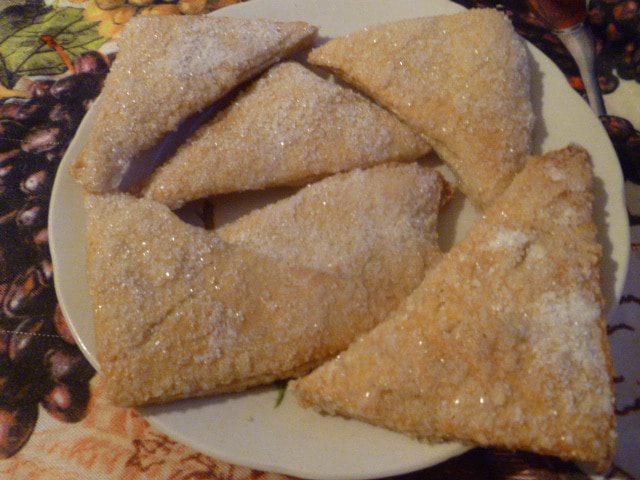 Этот рецепт я придумала сама. Захотелось чего-нибудь простого, необычного... Мой эксперимент удался и тесто получилось с легкой слоистостью... Вкуснейшие слоечки и рулет с мясом, печенье с сахаром и безе...
