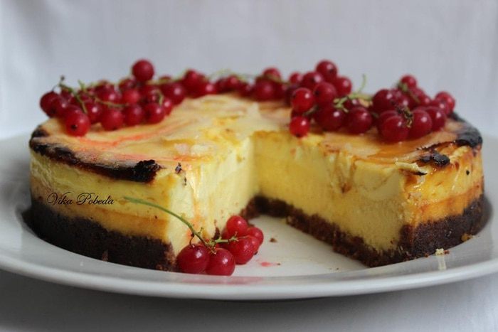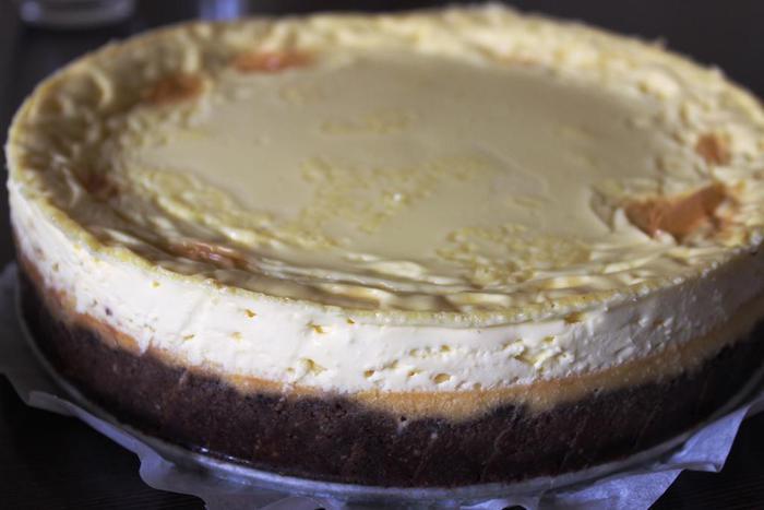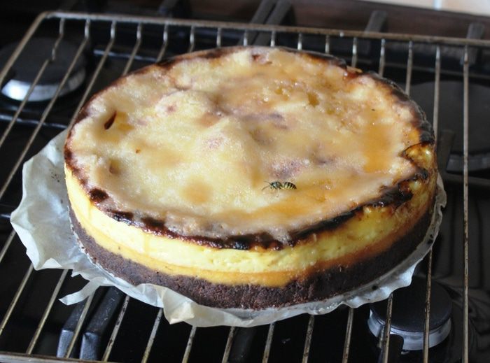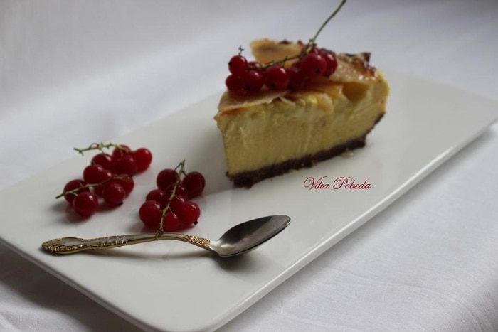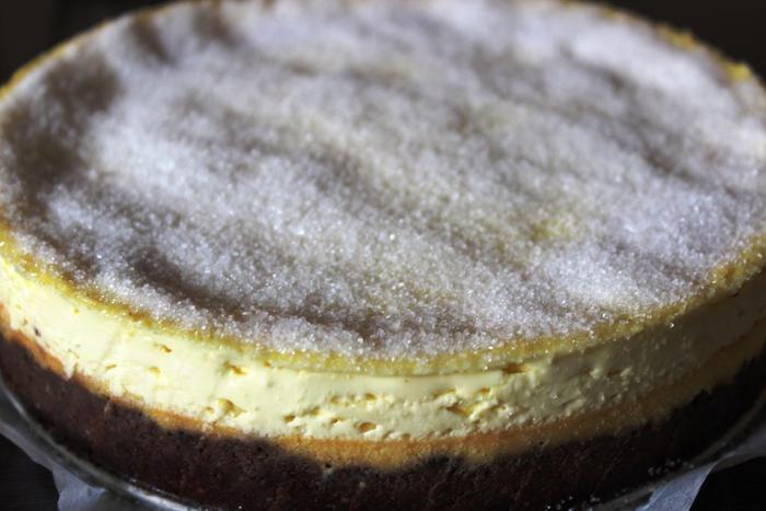 А если и гриля нет, то нужно немного изловчиться: насыпать сахар на сковородку и полностью расплавить (не мешая), пока не станет карамельного цвета. Затем очень быстро вылить на поверхность чизкейка так, чтобы карамель растеклась тонким слоем и покрыла весь кремовый слой. Если честно, я так не делала, поэтому за результат не отвечаю)))))