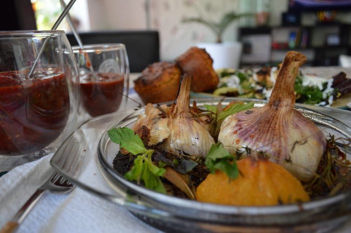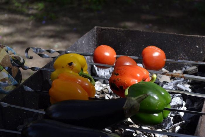 Итак:) все что ускользает - если это баклажаны, кабачки, перец сладкий, чили, сельдерей, морковь разрезаем (кому как удобно, мне нравится на длинные сегменты для гриля резать) , сбрызгиваем маслом приправляем солью, перцем и ароматными травками и жарим на сухом гриле до очень черных полосок. Гриль может быть в виде сковородки с полосками, домашний гриль или открытый огонь (что вообще круто), можно вообще на шампурах (как на фото) ну конечно тогда целиком.