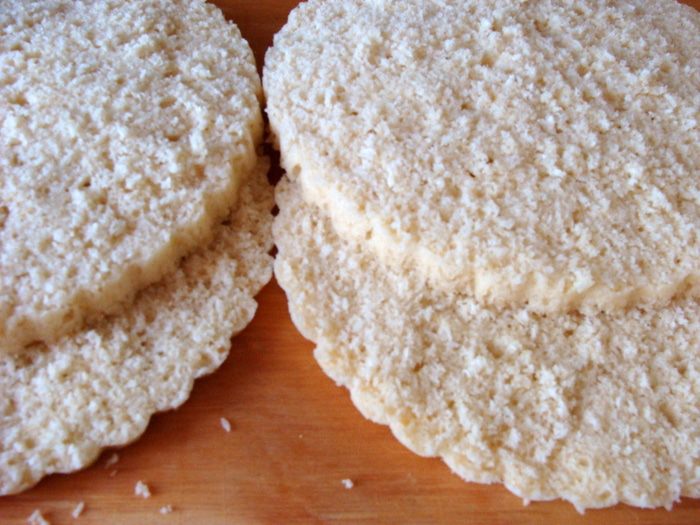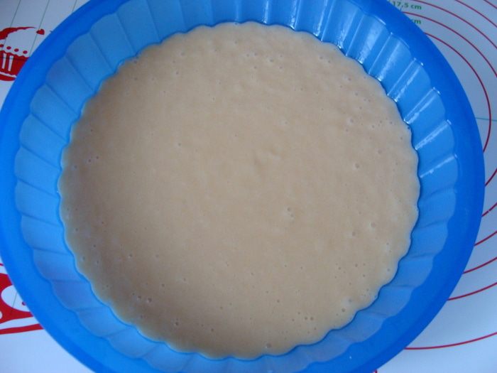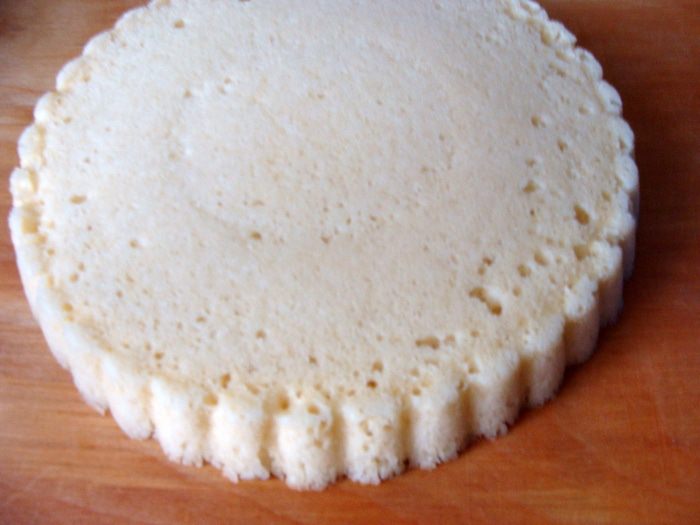 Подготовить продукты и форму для коржа. У меня форма 24 см. Корж выпекается в микроволновке, учтите это при выборе формы!