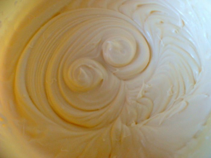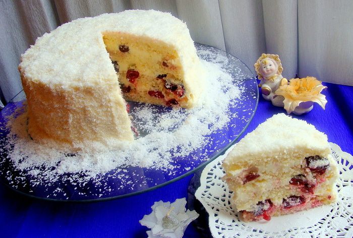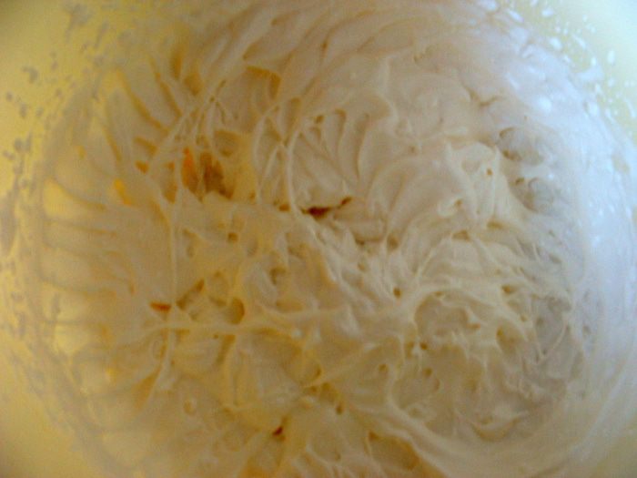 Мало растопить, остудить и взбить миксером вместе с яйцами, ликером и сахаром.Добавить кокосовую стружку, муку и разрыхлитель. Взбить заново до однородной массы.