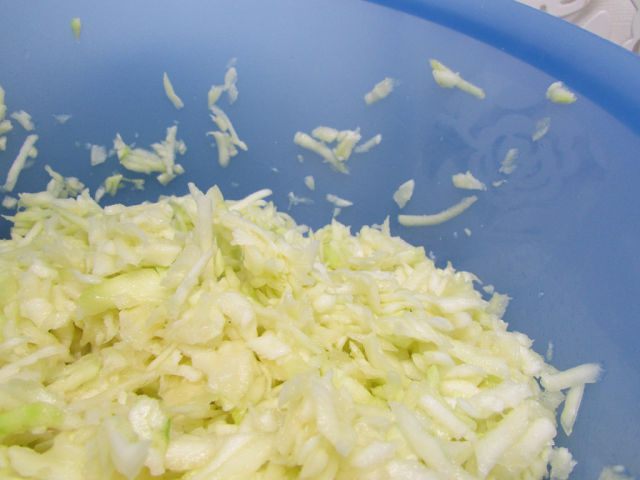 Натереть на крупной терке, посолить и дать постоять 30 минут.