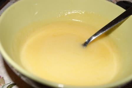 Приготовить заливку. Все ингредиенты соединить в сотейнике, довести до кипения, слегка остудить.